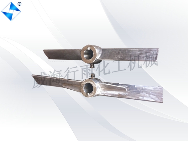 折叶式搅拌器是一种径流式搅拌器,但折叶桨式叶轮也会对流体的轴向流动有一定的效果。这种搅拌器的转速一般不高,一般也仅为100r/min,即这属于一种慢速型搅拌器。这是因为其桨叶直径需取得较大,如转速再高,会使得搅拌所需的功率太大。平直叶桨式搅拌器能对流体产生较大的剪切力,但其对流循环较差。因此,当将其用于粘度不是很大的介质时,往往可以考虑在搅拌槽内安装挡板,以获得使流体上下翻腾的搅拌效果。